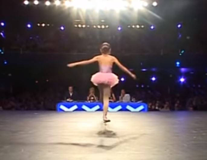 La colegiala comenzó a bailar un número de ballet cuando la canción “Pude haber bailado toda la noche”, resonó en el auditorio. Saltó por el escenario mientras los jueces observaban, no pareciendo tan impresionados.