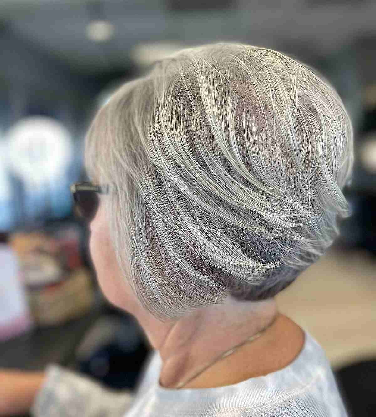 Salt and peppered short stacked bob