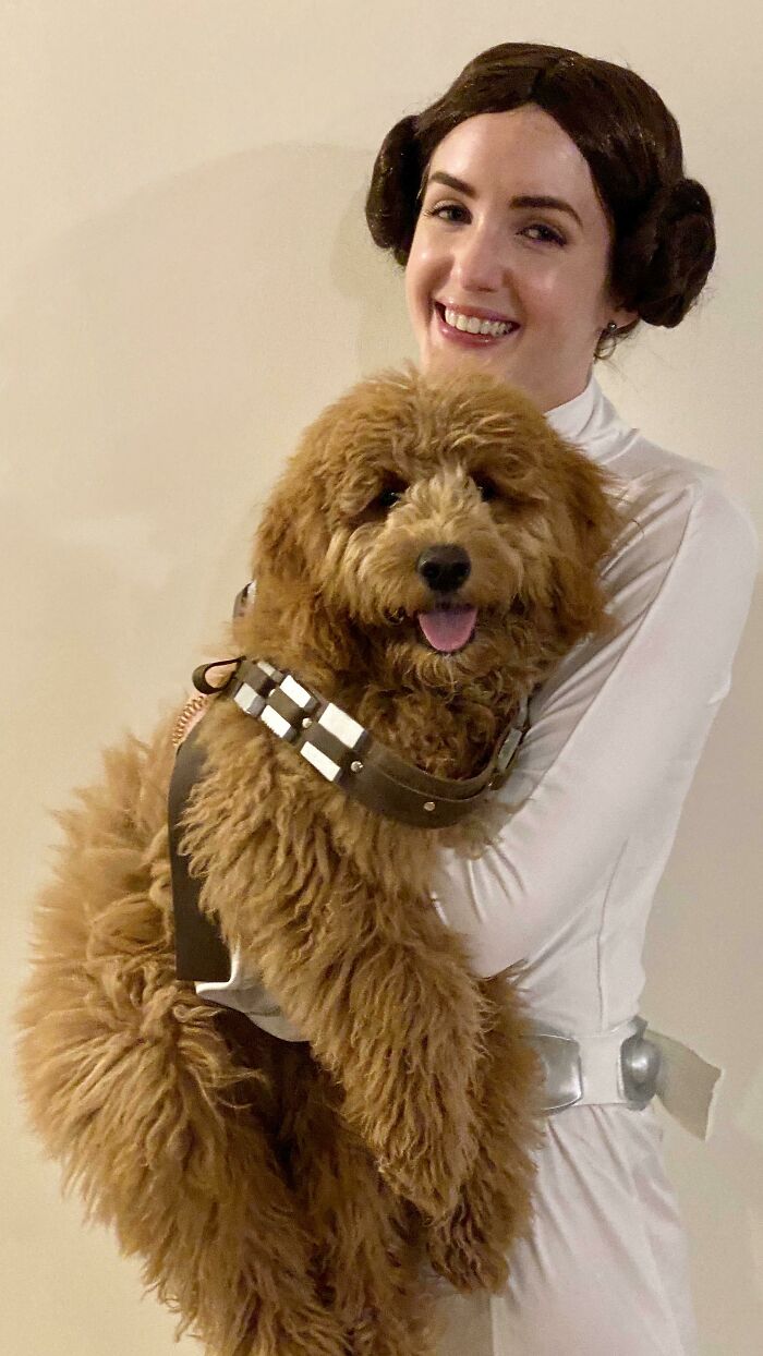 Every man’s secret dream is for their girlfriend to dress up as Princess Leia, but adding a doggy Chewbacca to the mix just makes it all the better! If we had a dog that looked like that, we wouldn’t be able to resist dressing him up as Chewie all the time- he just looks so cute!