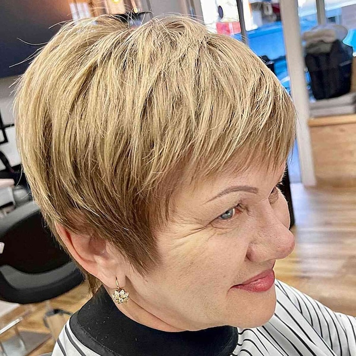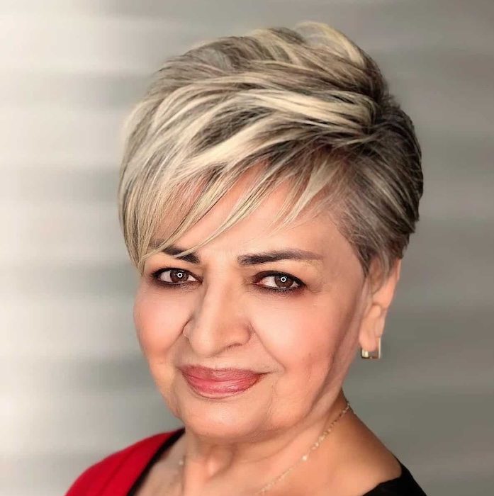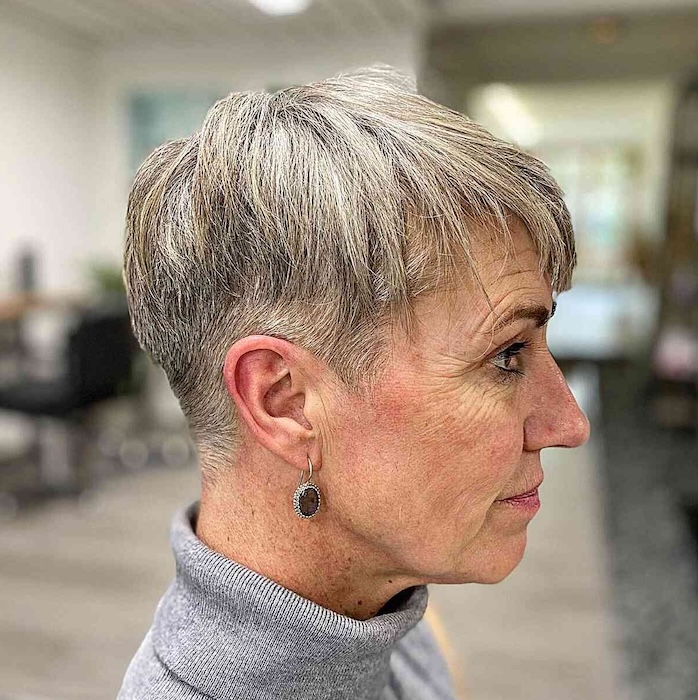 A salt and pepper pixie hairstyle is perfect for women with natural glitter in their hair. Opting for a rounded pixie is ideal if you desire height and fullness. Embrace your natural tones confidently and feel beautiful every day.