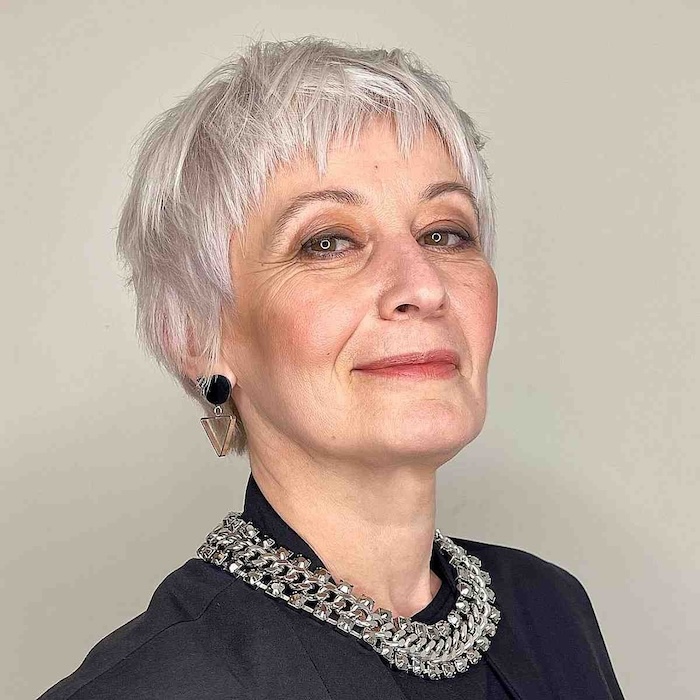 Silver Pixie With Choppy Bangs