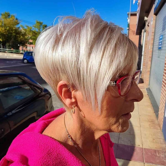 Say hello to the stylish brushed-forward fringe on a pixie cut. This chic, modern look is perfect for older women who want to stay hip and cool. Keep in mind, pixie cuts can be high maintenance, requiring salon visits every four weeks for trims and shaping.