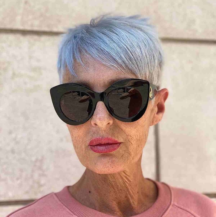 Gray pixie cuts should exude effortless style and look great without much effort. It only takes a few minutes to enhance this hairstyle. The best way to style this chop is with piece-y definition. Use wax or salt spray to make the layers stand out and achieve a textured, stylish look.