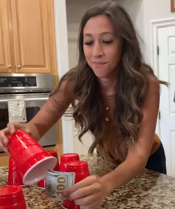 The guy holding the camera informs Bob that under one of those cups is a lot of money. He doesn’t say how much, but that it’s a lot. It’s like one of those bonus rounds in game shows.