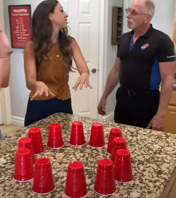 The girls arrange red cups in a circle on the kitchen counter. Under those cups are dollar bills in varying denominations. The doorbell rings and the two girls run excitedly to greet the pizza delivery guy. Then again, who doesn’t run when there’s pizza?