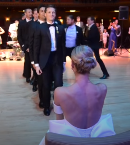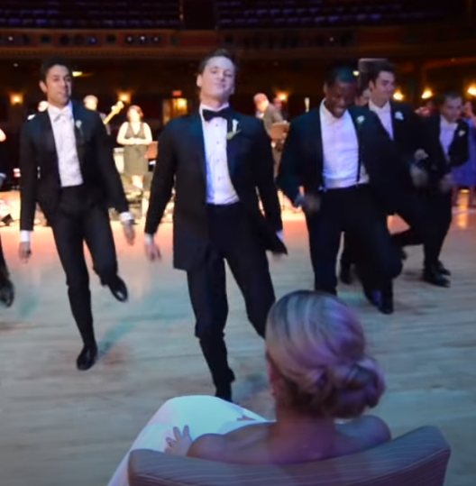 Kirk is a professional dancer. He decided to surprise his bride with an incredible dance number, so he got is best buds together and they put on a show for family and guests.