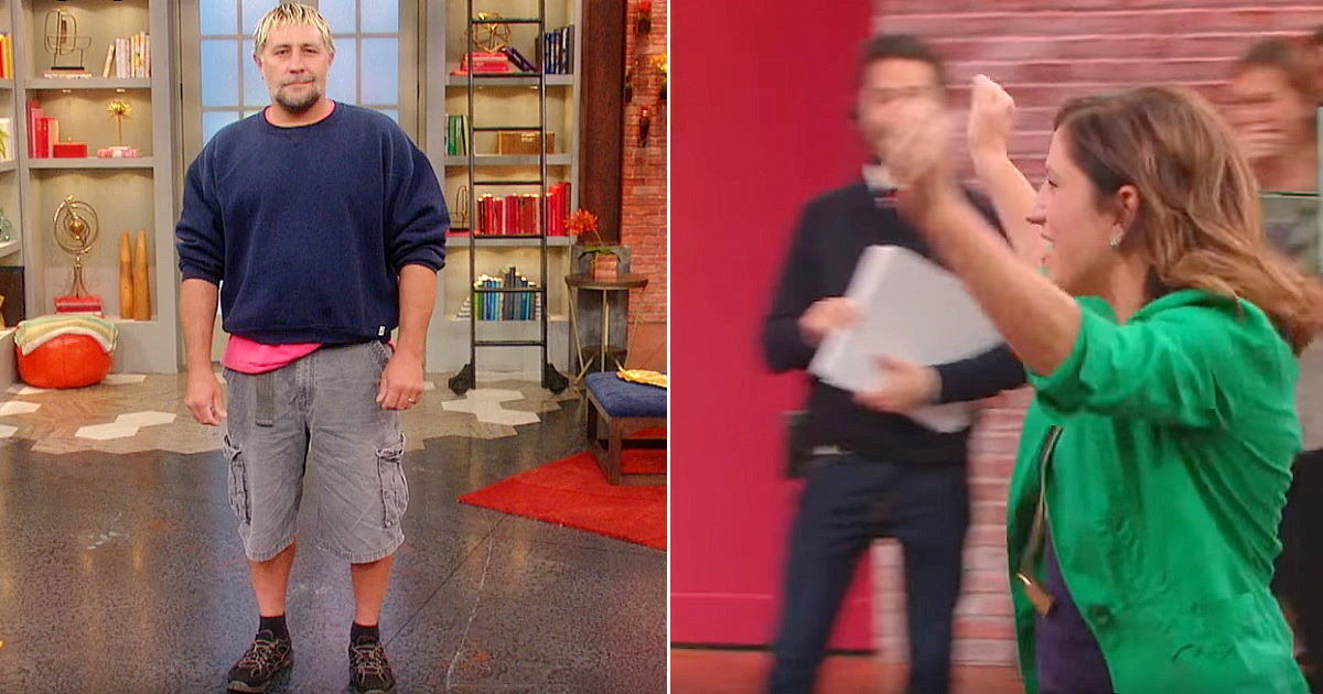 The construction worker was brought backstage and worked on by stylists, while everyone waited anxiously. In addition, fashion consultant Clinton Kelly was there to assist in the transformation.