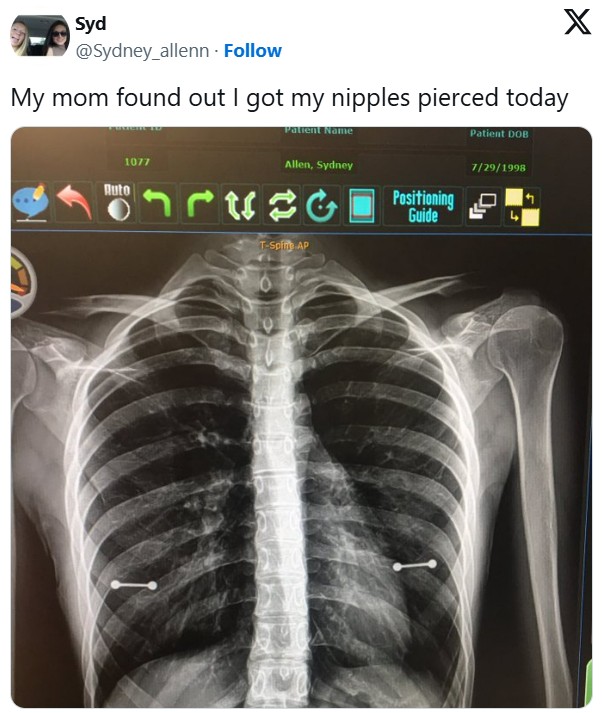 X-rays don’t just show what’s inside your body—they also reveal anything hidden under your clothes. This woman learned that the hard way when her mom saw the image and instantly knew what she’d been keeping secret.