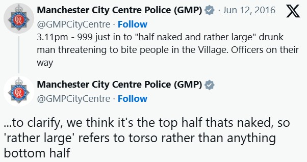 The Manchester City Center issued an emergency notice on Twitter about an awkward crime happening in the area. But their attempt to clarify the situation only made things even more uncomfortable—and unintentionally hilarious.