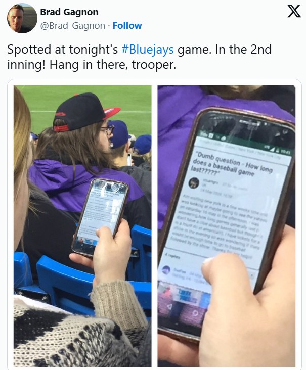 It must’ve been this woman’s first baseball game—fans spotted her looking up funny questions about the game on her phone. She clearly had no idea what was going on, but thankfully, smartphones are a lifesaver in situations like these.