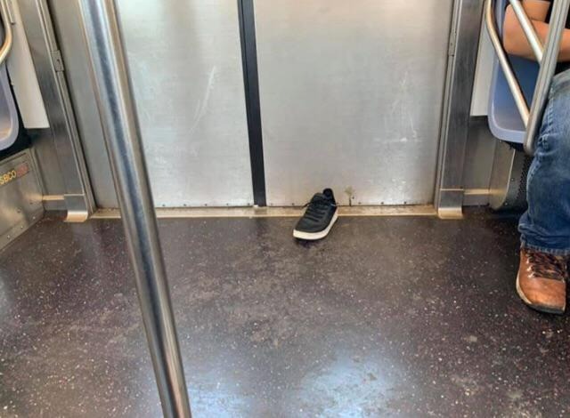 This man’s shoe popped off just as the subway doors were closing, leaving him stranded on the platform hopping on one foot. Now he’s stuck making the trip home in just his socks.