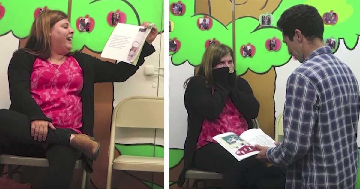 Eric could tell Melanie was already suspicious of what was happening after reading the first page, especially since the book was literally modeled after her own life and moments she shared with Eric. Still, Melanie kept reading on in the story, and the moment began to unfold as the small audience watched on.