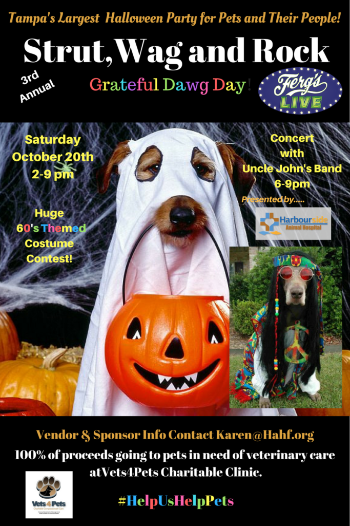 The Strut, Wag, and Rock event, run by Vets4Pets Charitable Clinic, is advertised as “the largest Halloween party for pets and their people in Tampa Bay.”