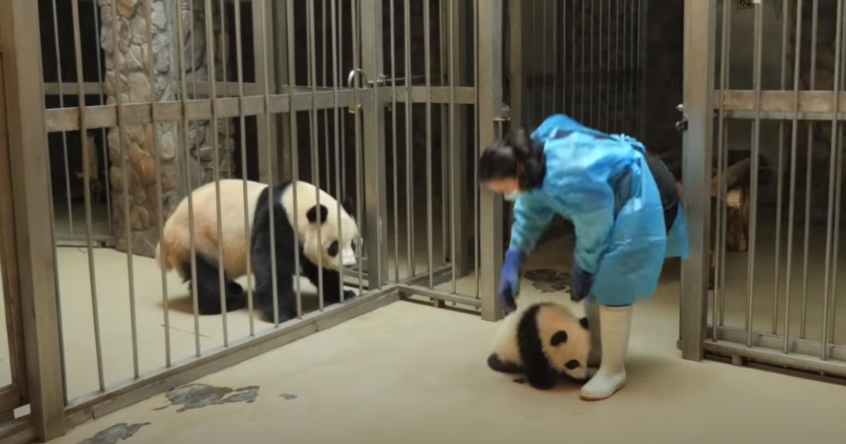 This applies to these two pandas — a mother and her panda baby — when a panda keeper gave her cub back to her.